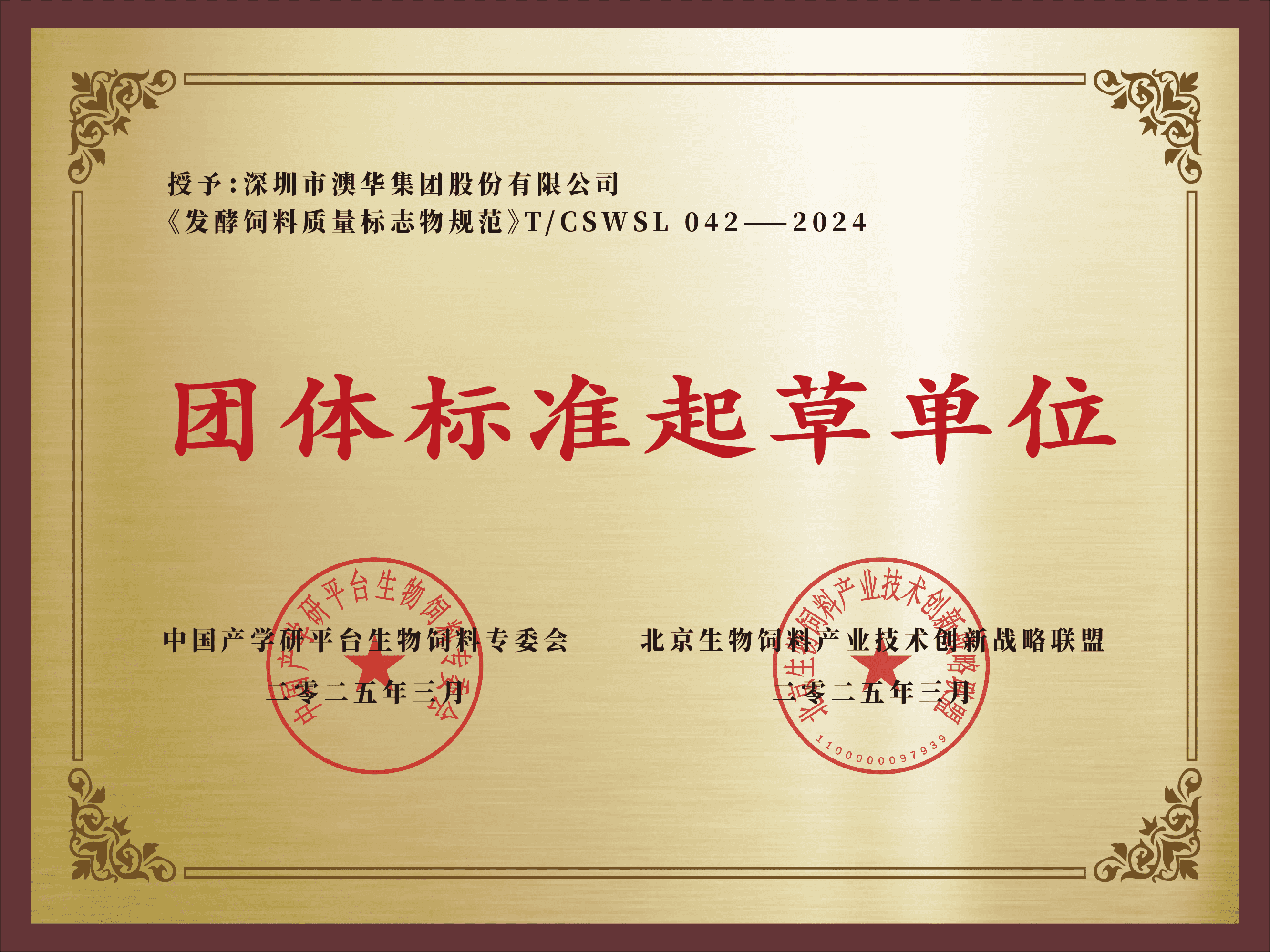 澳华参与起草的标准《发酵饲料质量标志物规范》获颁布实施