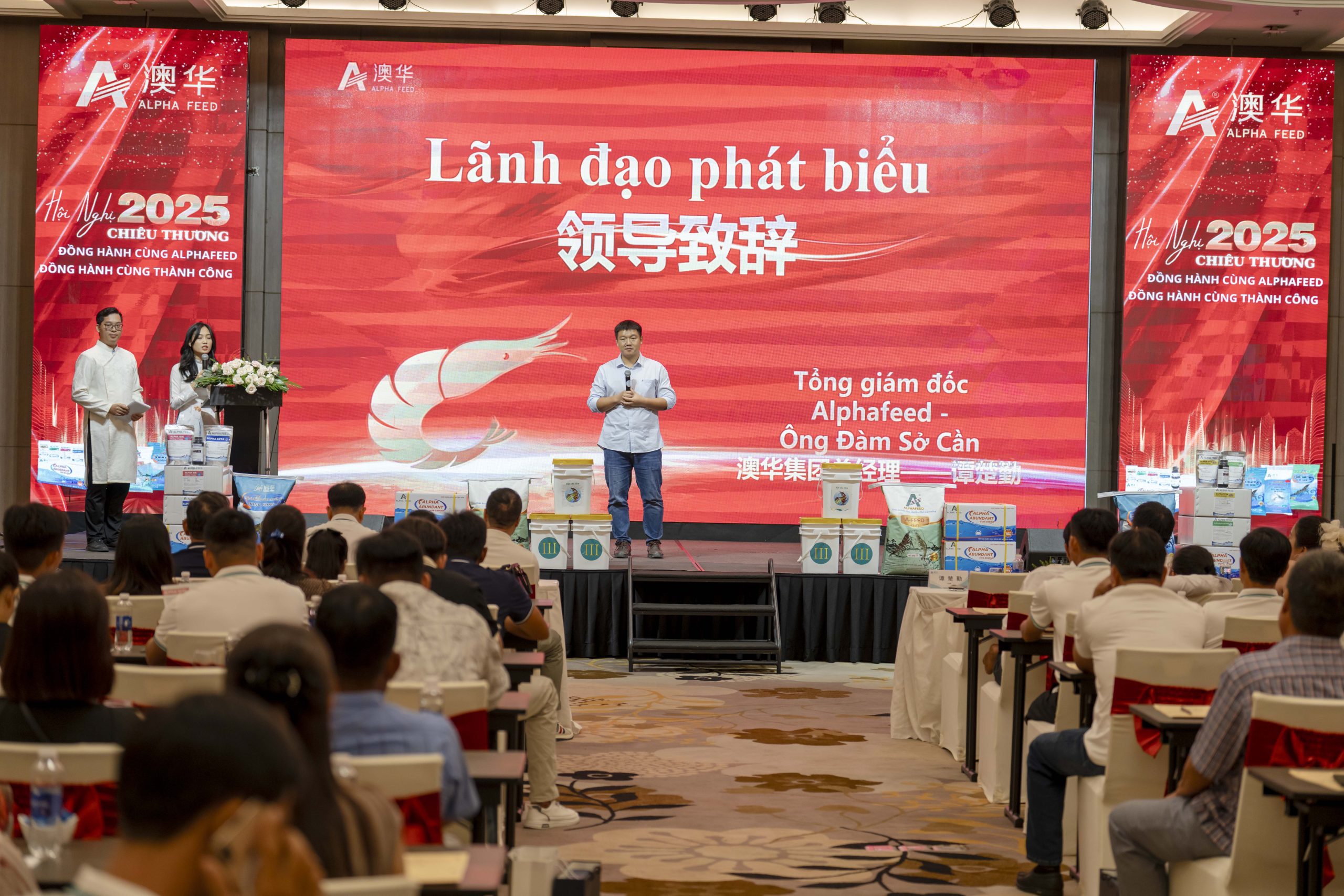 9月23日,越南澳华在芹苴喜来登酒店成功举办以“携手澳华,共赢未来”为主题的招商大会。澳华集团助理总裁喻明波、越南澳华常务副总经理李辉、越南澳华总经理谭楚勤及管理团队出席活动,大会邀请来自越南各地的100余位核心虾料客户汇聚一堂,共同探讨合作机遇,共绘增长新蓝图。